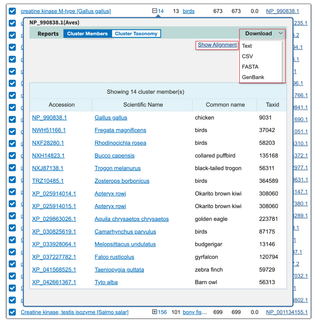 用户可以展开Cluster,查看或下载所有成员蛋白质的序列报告。