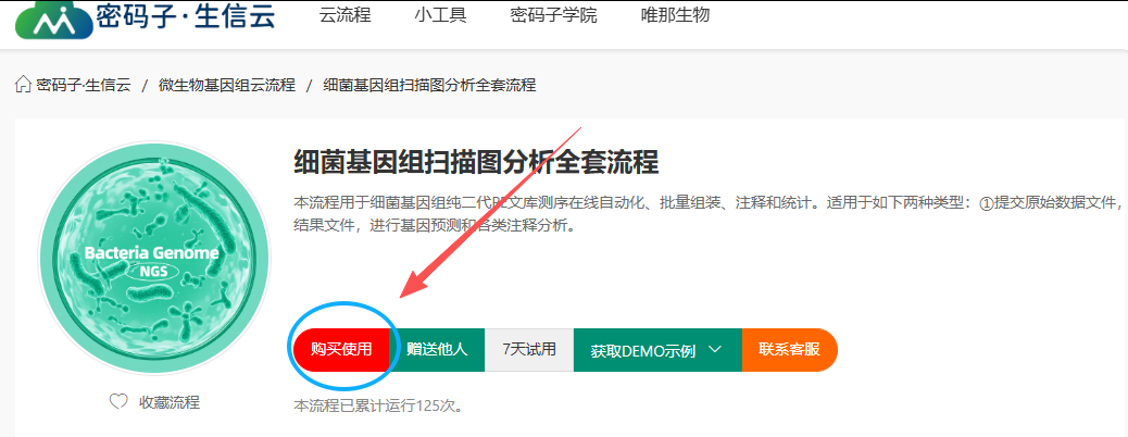 (1)选购具体的商品,例如,选择购买细菌基因组扫描图云流程。
