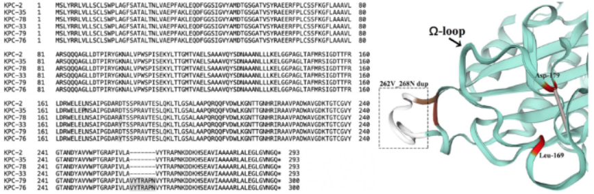 (图2 KPC-2及其变体的氨基酸序列和X射线晶体蛋白结构)