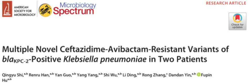 Qingyu Shi, Renru Han, Yan Guo, et al. Multiple Novel Ceftazidime-Avibactam-Resistant Variants of blaKPC-2-Positive Klebsiella pneumoniaein Two Patients [J]. Microbiol Spectr, 2022, 10(3): e0171421.