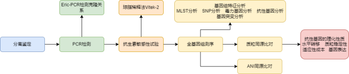 研究方法:全基因组测序、接合试验、质粒稳定性试验、适应性试验、抗生素敏感性试验。
