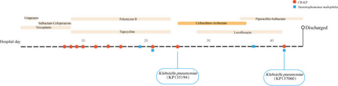 (图1 碳青霉烯类耐药肺炎克雷伯菌感染患者的感染时间和治疗)