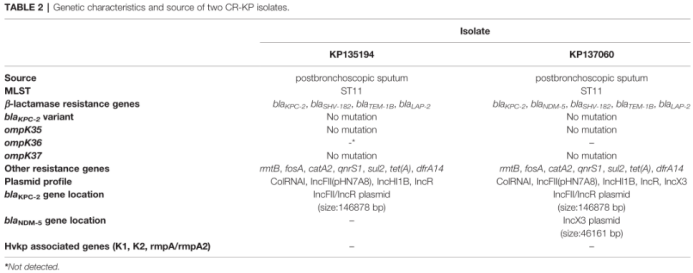 (表2 两株CR-KP菌株的遗传特征及来源)