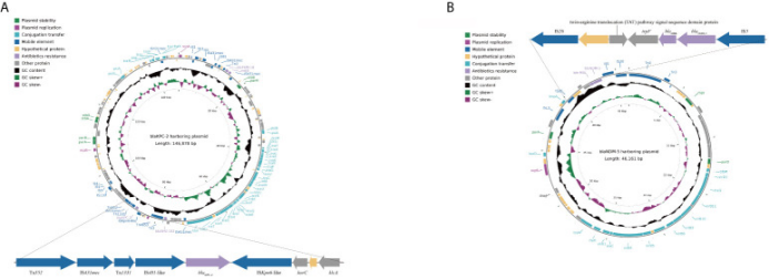 (图2 菌株KP137060的blaKPC-2质粒(A)和blaNDM-5质粒(B))