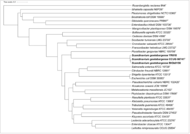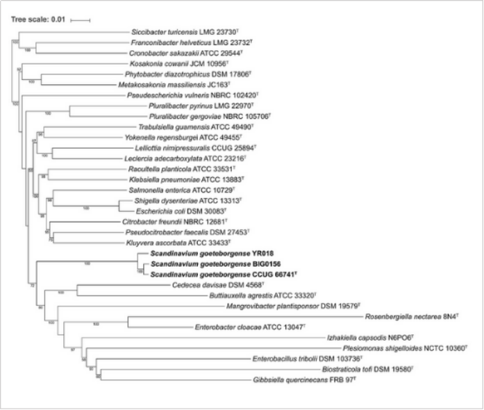 Marathe N, Salvà-Serra F, Karlsson R, et al.Scandinavium goeteborgensegen. nov., sp. nov., a new member of the familyEnterobacteriaceaeisolated from a wound infection, carries a novel quinolone-resistance gene variant[J]. Frontiers in microbiology, 2019, 10: 2511.