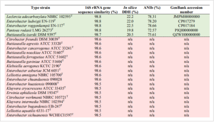 研究背景:肠杆菌科(Enterobacteriaceae)种类繁多、分布广泛,其中包含大量的人类共生菌和病原菌,基因组上常见可转移的抗生素抗性基因元件。世界卫生组织已经将肠杆菌科中具有碳青霉烯类抗生素抗性及广谱β-内酰胺酶合成特性的细菌列入第一批优先研发抗生素的病原体(2017),因此对该科中新物种的鉴定研究有助于全面了解其带来的健康风险并进行及时有效的感染防治。
